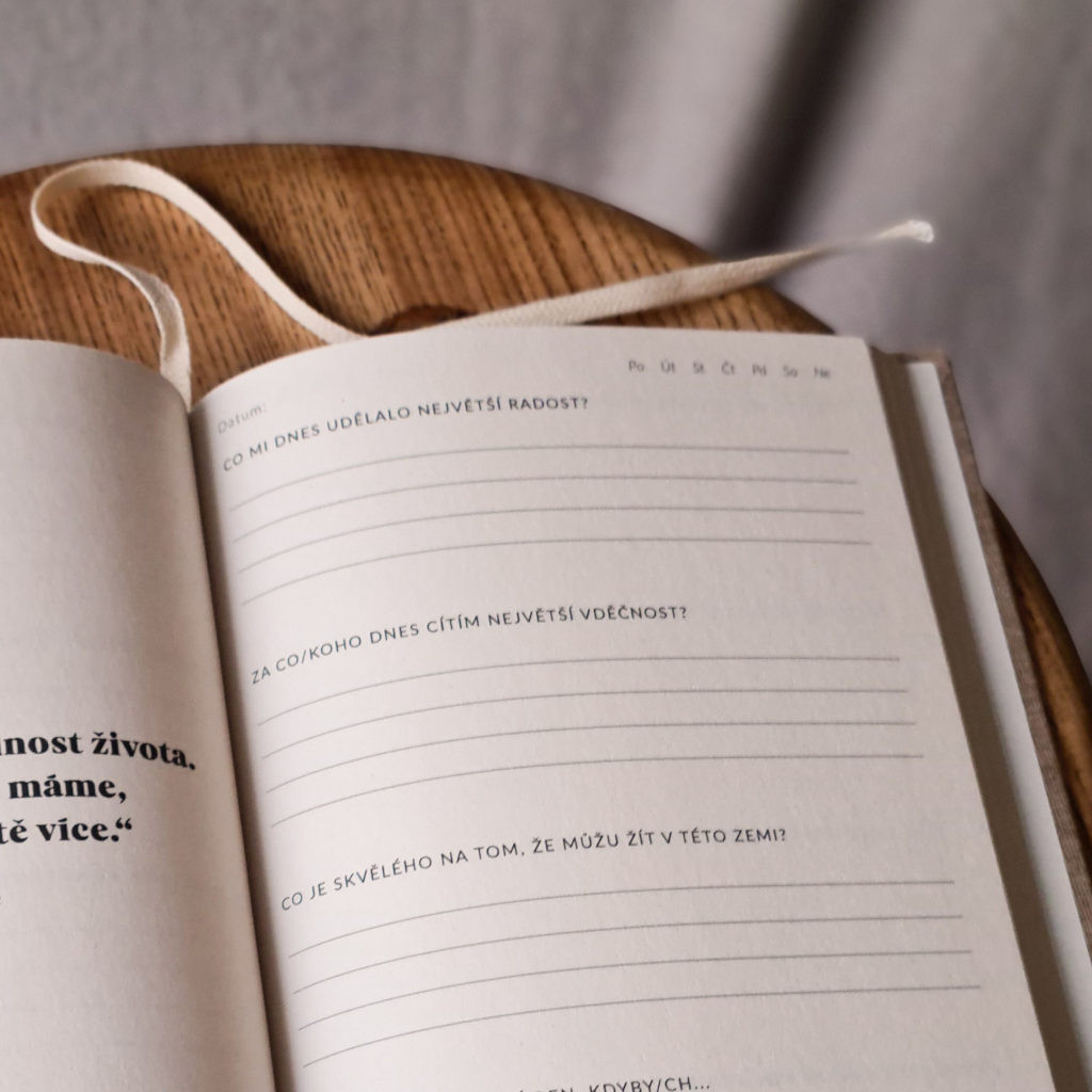 Jsou dny, kdy se prostě nezastavíme a nemáme čas ani na malé chvíle klidu. I s tím deník počítá – jeho stránky nejsou datované. Když nějaký den vynecháš, nemusíš nic dohánět ani listovat zpět. Pokračuj jednoduše tam, kde jsi skončil/a, až to bude možné.