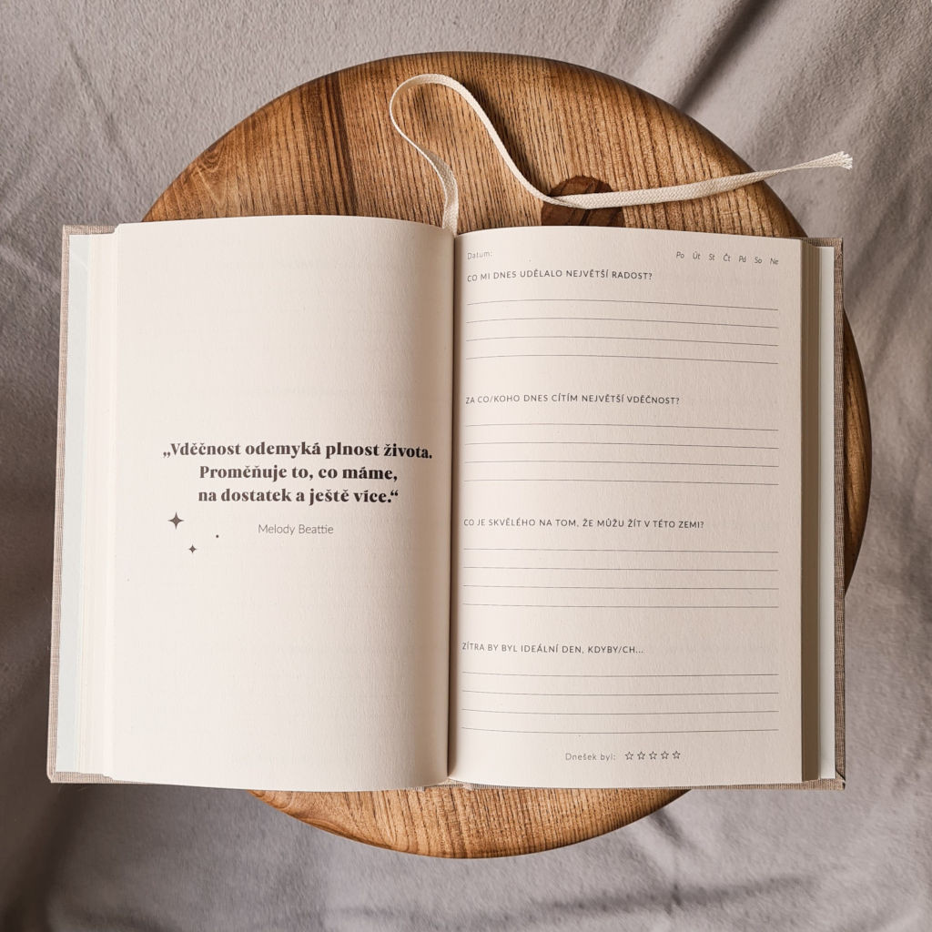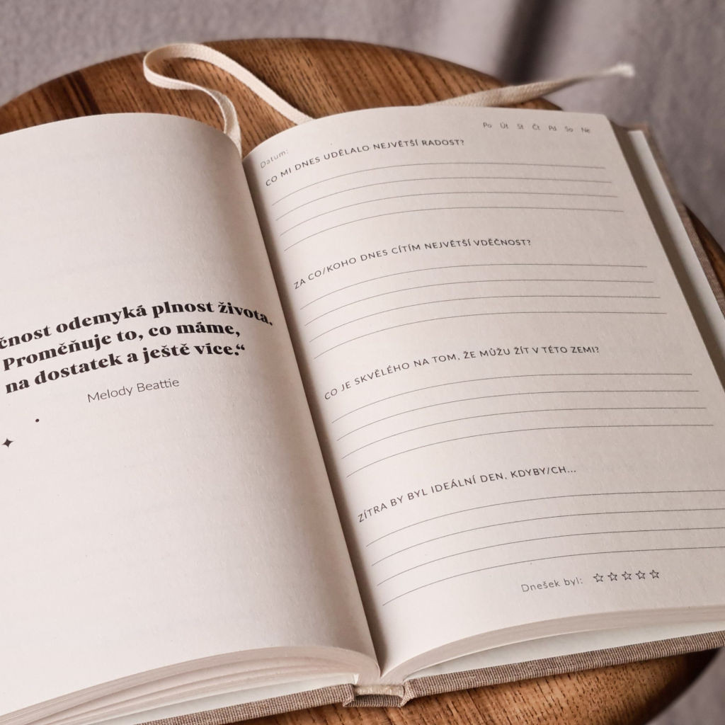 - Stačí si vyhradit pouhých 5 minut z tvého večera - deník je velice jednoduchý a díky tomu si z něj snadno vytvoříš návyk, u kterého je reálné vydržet dlouhodobě