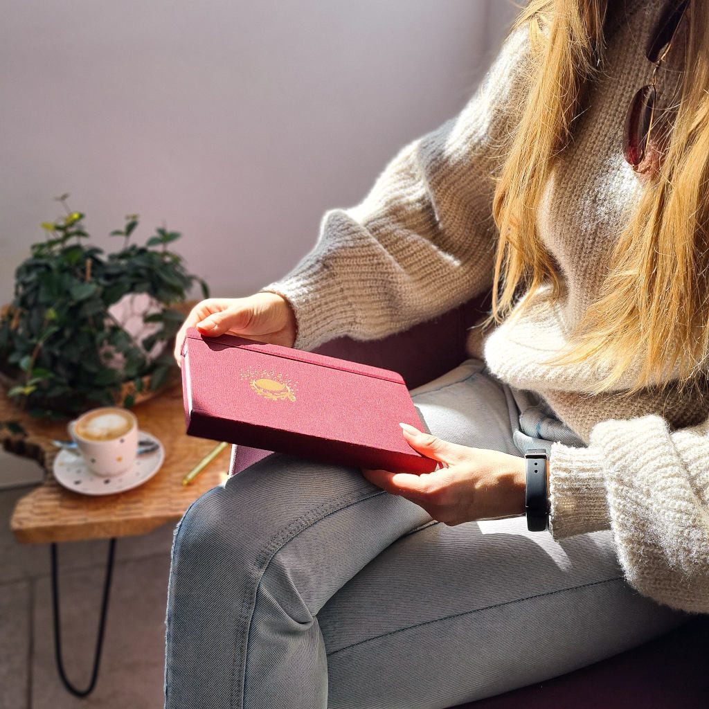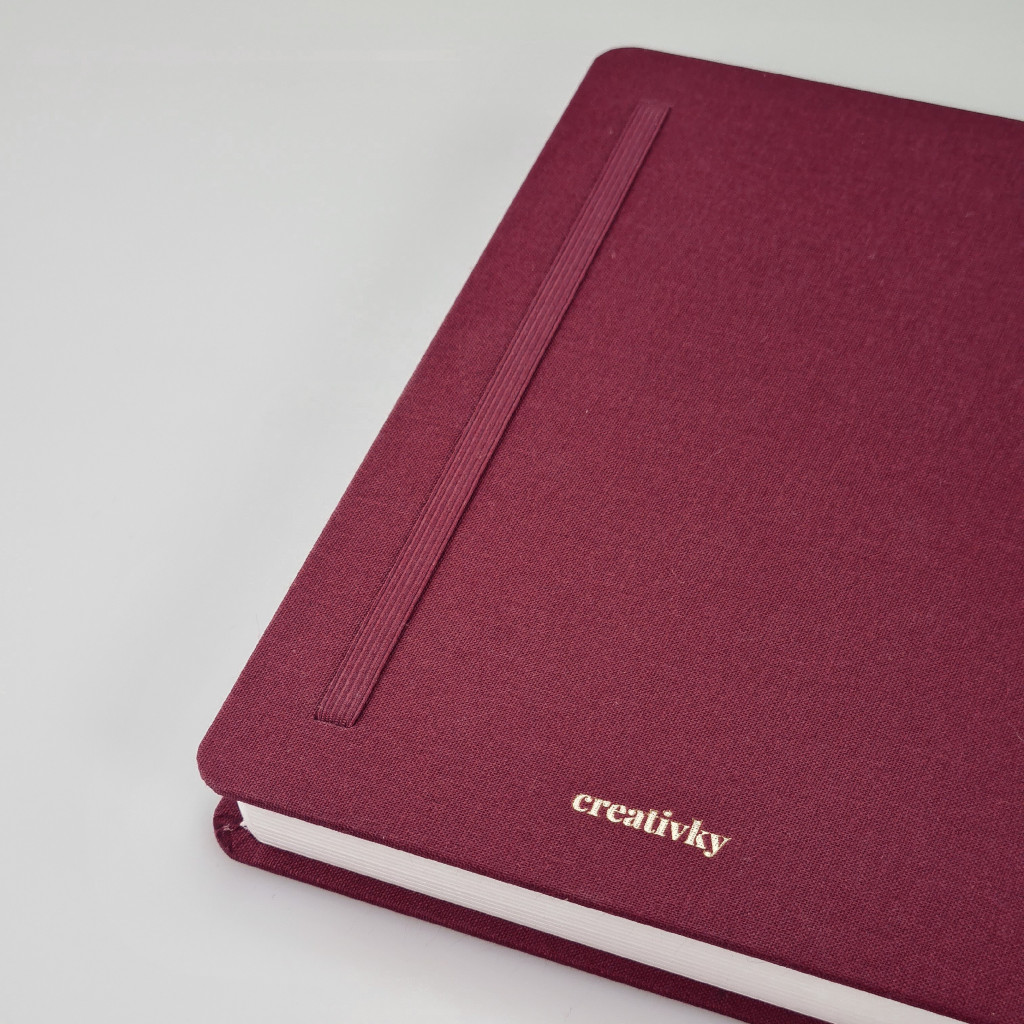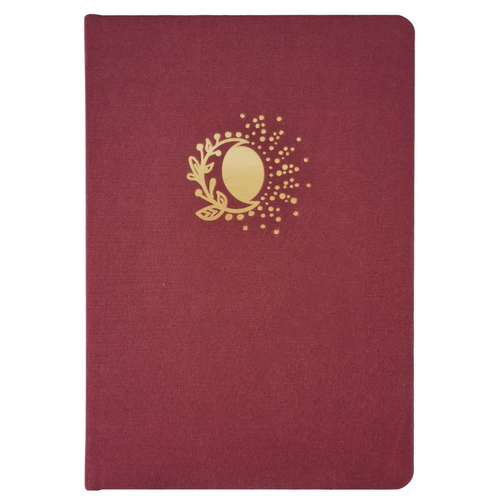 Náš Bullet Journal zápisník vyrábíme v Česku a má kvalitní zpracování. Deník má pevné desky potažené látkovým potahem ve vínové bordó barvě. Přední desky zdobí krásná zlatá ražba slunce s měsícem, autorská kresba naší grafičky. Zápisník má zaoblené rohy, což je pohodlnější při manipulaci. Aby se ti zápisník samovolně neotvíral, přidali jsme barevně ladící elastickou gumičku na zavírání. Pro maximálně praktické používání jsme přidali 2 stužky na založení stránek. Pokud uvítáš i praktickou kapsičku, můžeš si ji přikoupit ZDE.