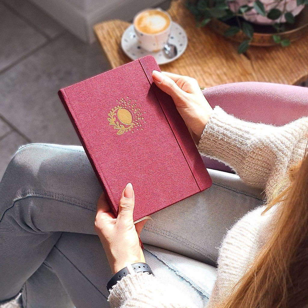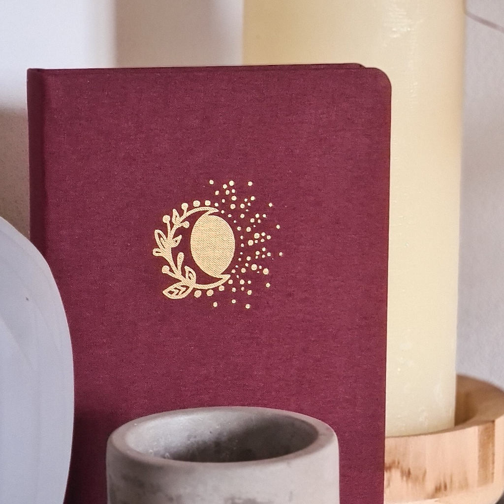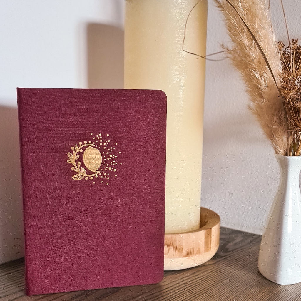 Náš Bullet Journal zápisník vyrábíme v Česku a má kvalitní zpracování. Deník má pevné desky potažené látkovým potahem ve vínové bordó barvě. Přední desky zdobí krásná zlatá ražba slunce s měsícem, autorská kresba naší grafičky. Zápisník má zaoblené rohy, což je pohodlnější při manipulaci. Aby se ti zápisník samovolně neotvíral, přidali jsme barevně ladící elastickou gumičku na zavírání. Pro maximálně praktické používání jsme přidali 2 stužky na založení stránek. Pokud uvítáš i praktickou kapsičku, můžeš si ji přikoupit ZDE.