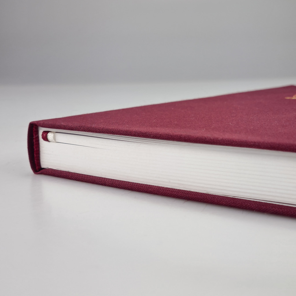 - Obálka: tvrdé desky, bordó (vínový) látkový potah