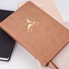 Náš Bullet Journal zápisník vyrábíme v Česku a má kvalitní zpracování. Deník má pevné desky potažené odolnou koženkou v přírodní hnědé barvě. Přední desky zdobí krásná zlatá ražba noční oblohy nad horami - autorská kresba naší grafičky. Zápisník má zaoblené rohy, což je pohodlnější při manipulaci. Aby se ti zápisník samovolně neotvíral, přidali jsme elastickou gumičku na zavírání. Pro maximálně praktické používání jsme přidali 2 stužky na založení stránek. Pokud uvítáš i praktickou kapsičku, můžeš si ji přikoupit zde.