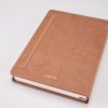 - Pevné desky potažené odolnou koženkou v hnědé barvě