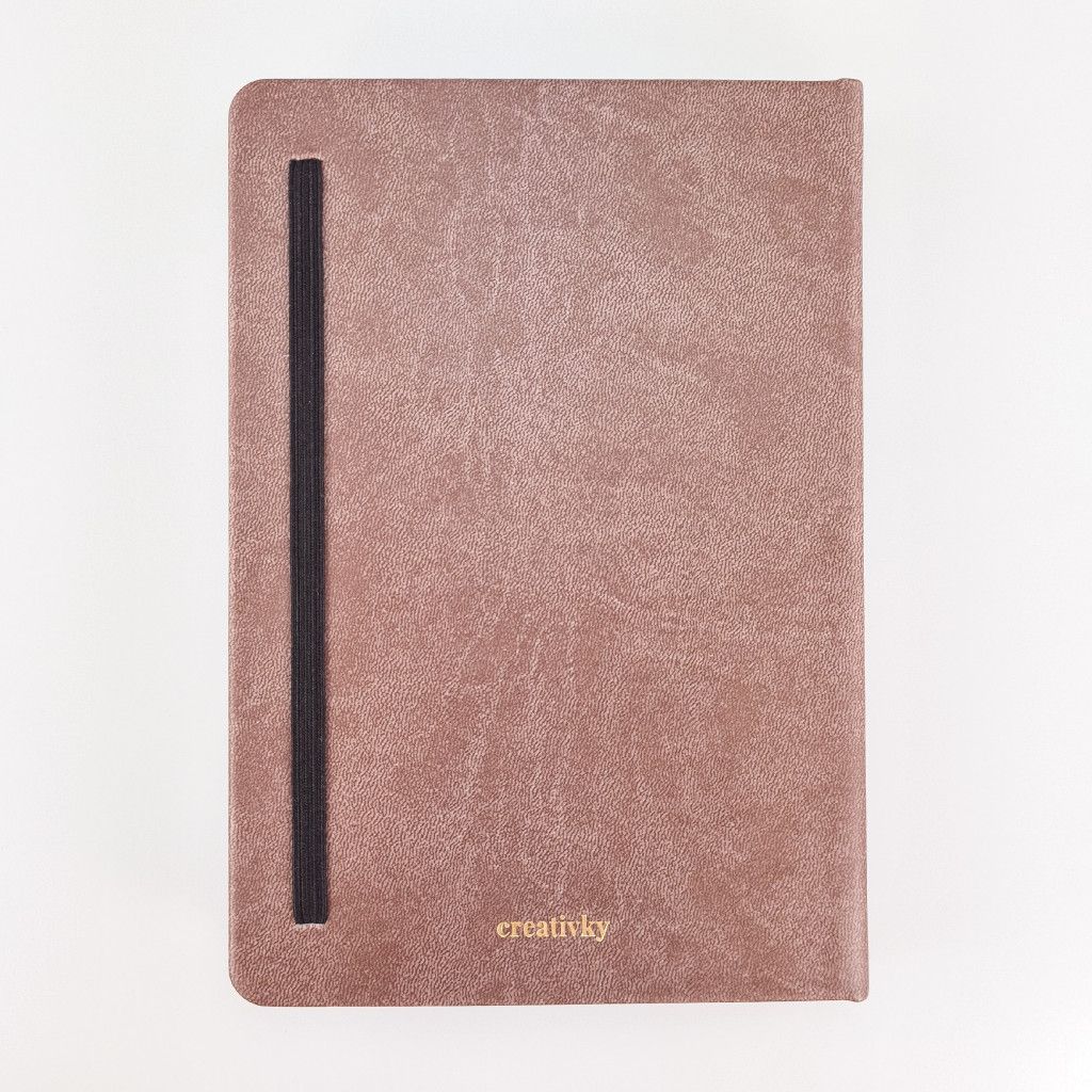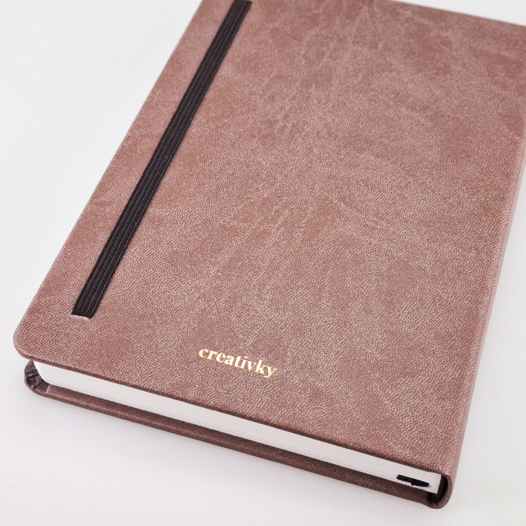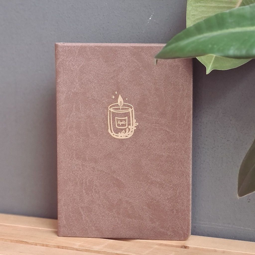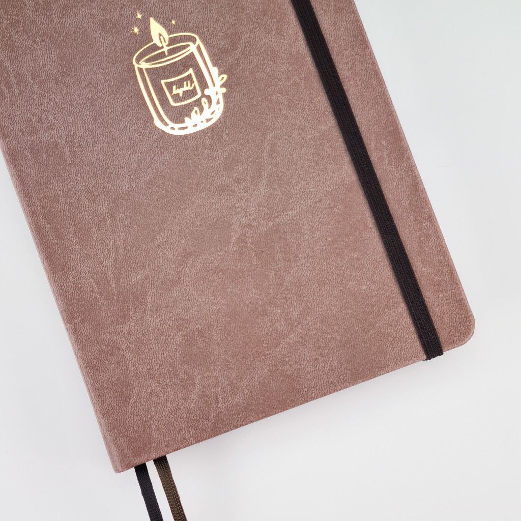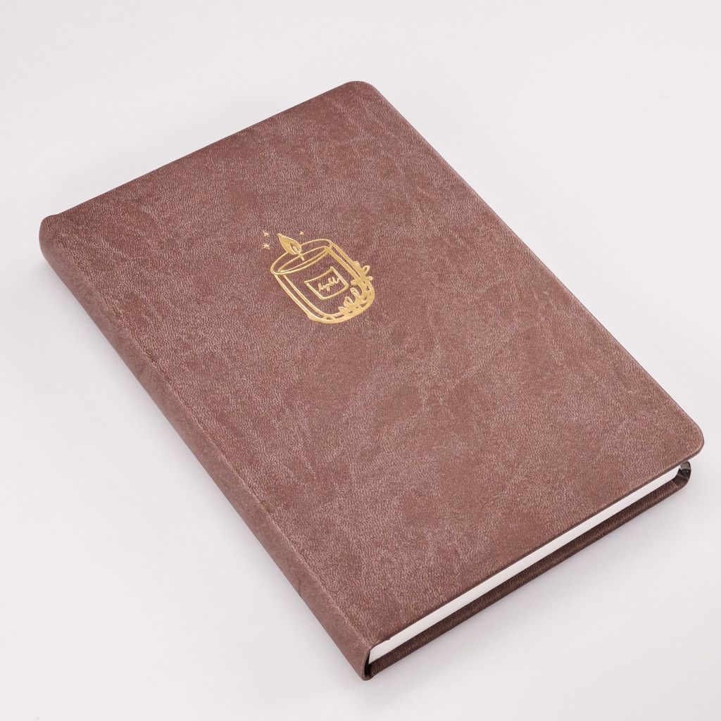 Náš Bullet Journal zápisník vyrábíme v Česku a má kvalitní zpracování. Deník má pevné desky potažené odolnou koženkou v zemité hnědé barvě. Přední desky zdobí zlatá obrázková ražba - hořící svíčka. Jedná se o autorskou kresbu od naší grafičky. Zápisník má zaoblené rohy, což je pohodlnější při manipulaci. Aby se ti zápisník samovolně neotvíral, přidali jsme elastickou gumičku na zavírání. Pro maximálně praktické používání jsme přidali 2 stužky na založení stránek. Pokud uvítáš i praktickou kapsičku, můžeš si ji přikoupit ZDE.